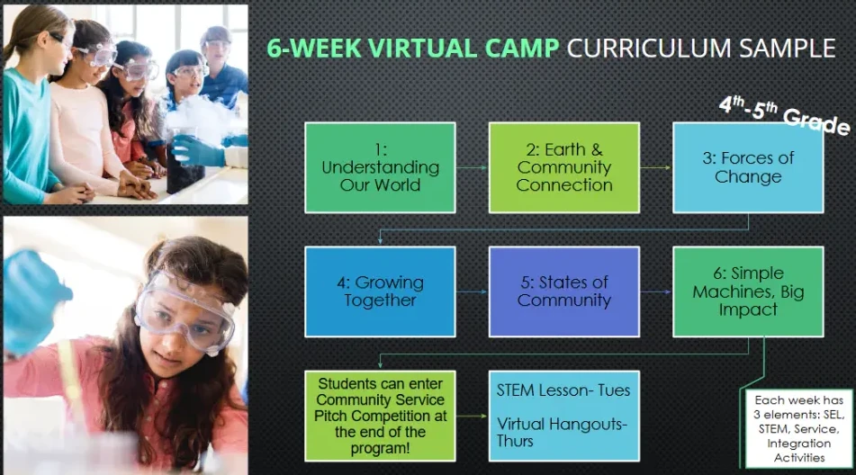 At VVFI, we break down barriers to quality afterschool and summer learning programs through FREE Virtual STEM Camps where hands-on, thought-provoking Science, Technology, Engineering, and Math is our driving purpose to improve student performance. Our FREE 6-Week Virtual STEM camp meets on Tuesdays for live student-centered sessions and Thursdays for virtual STEM Hangouts, where students explore STEM-focused community service project development in preparation for the quarterly community service pitch competition. From robotics to writing, each program empowers young minds to reach their full potential through engaging activities that build confidence and critical thinking skills.